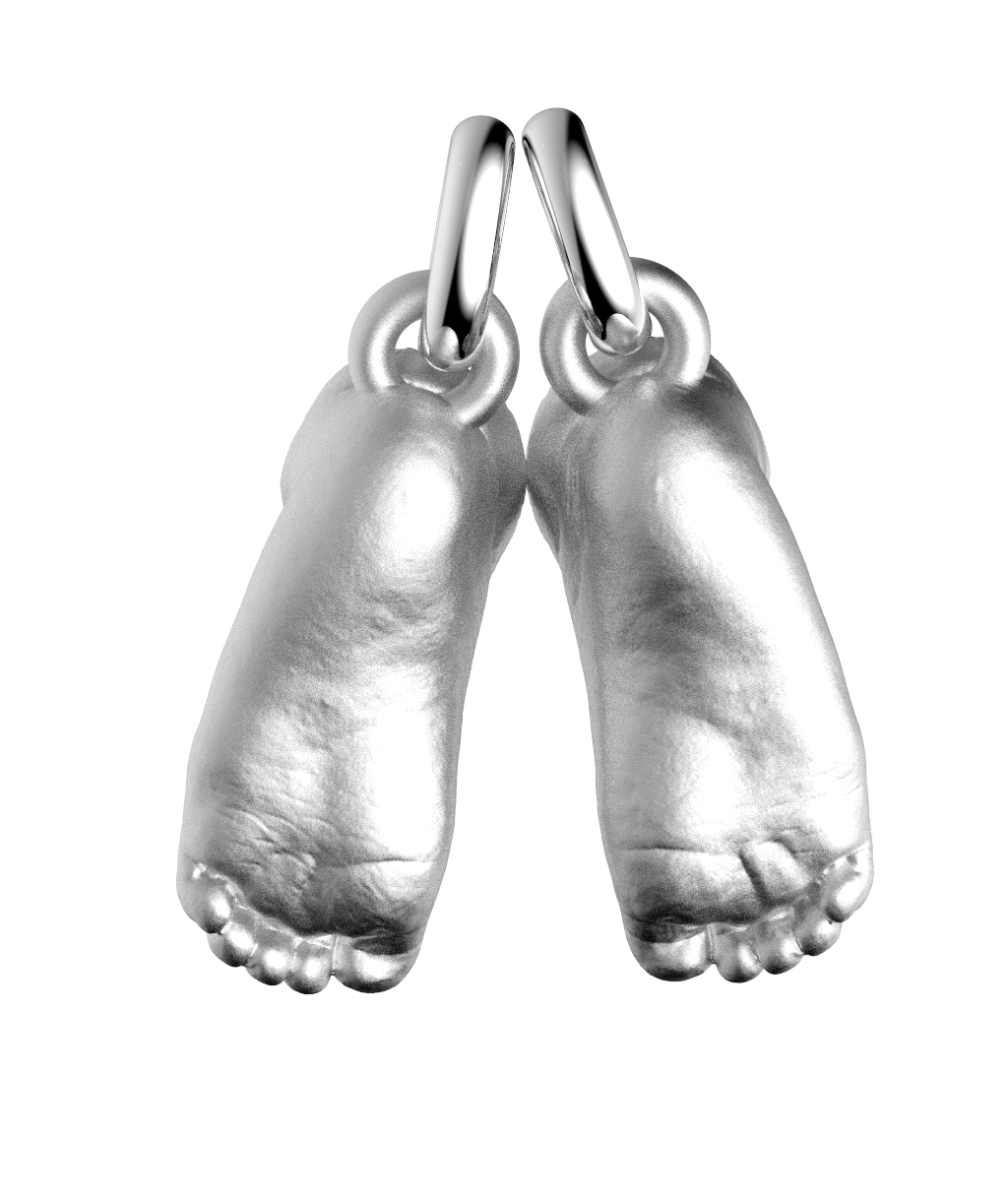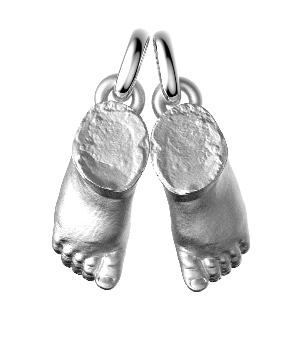 Bespoke satin silver feet pendants with polished silver bail rings.