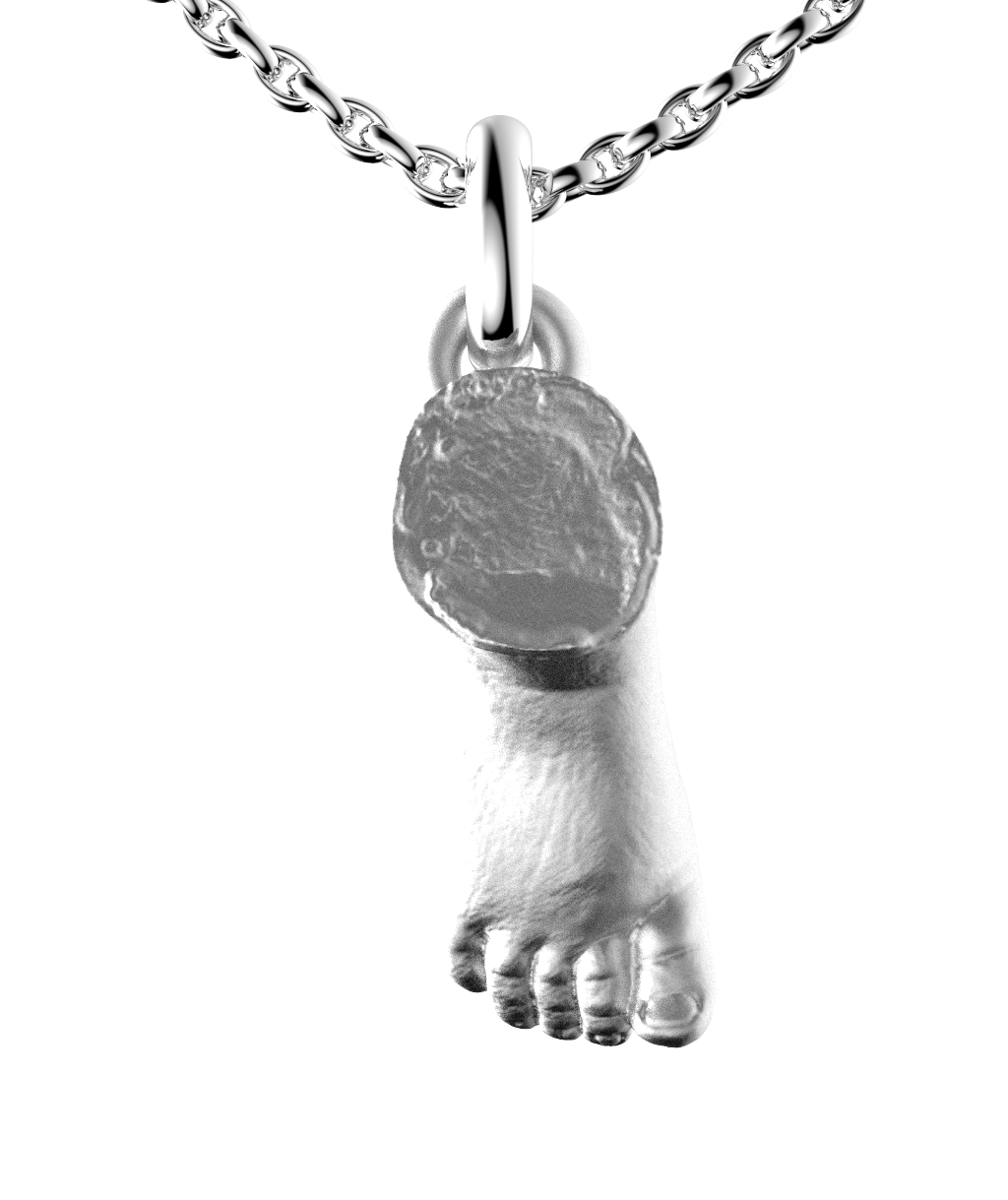 Bespoke satin silver foot pendant with polished silver bail ring and 45cm chain.