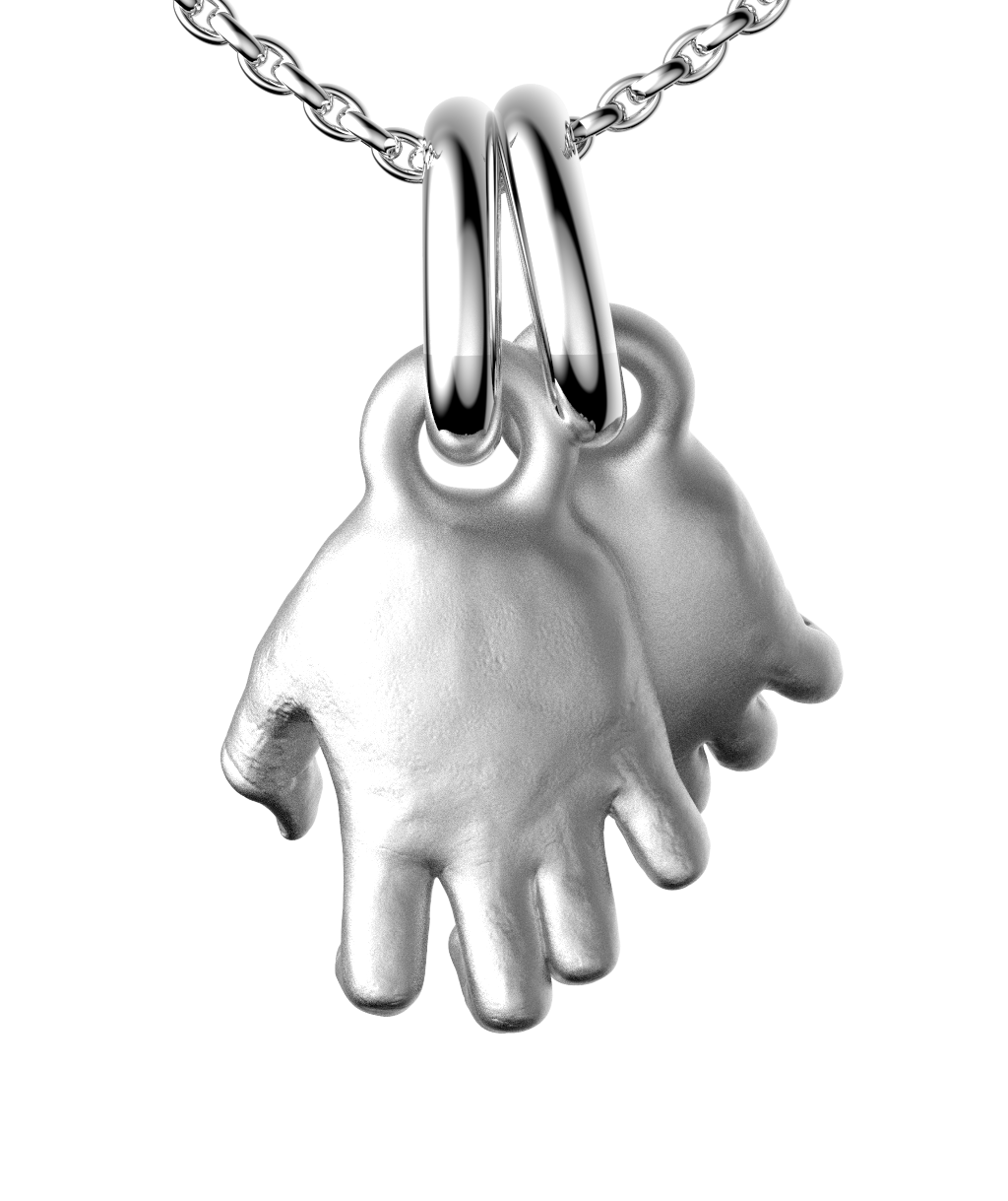 Bespoke satin silver hands pendants with polished silver bail rings and 45cm chain.