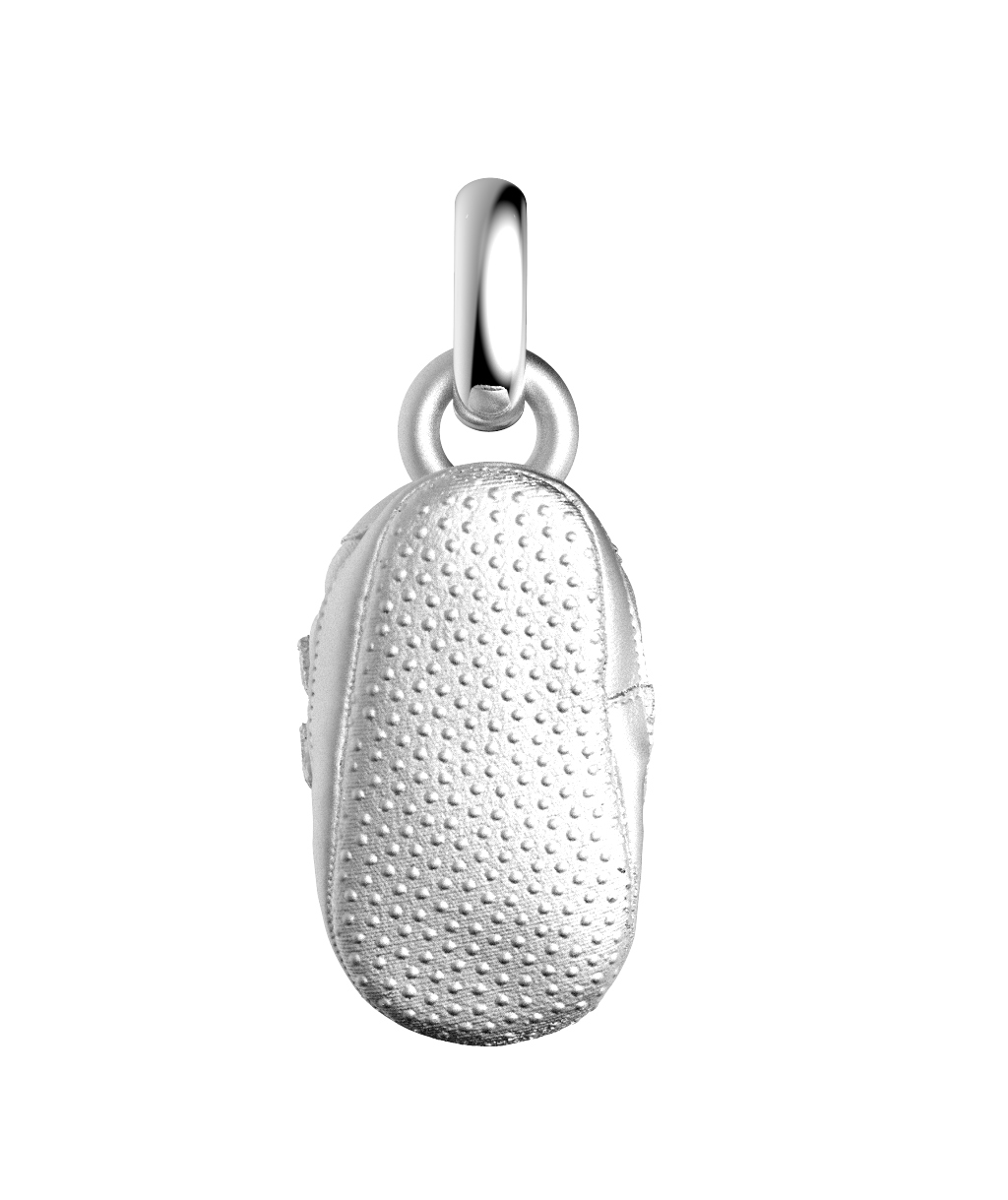 Bespoke satin silver shoe pendant with polished silver bail ring.